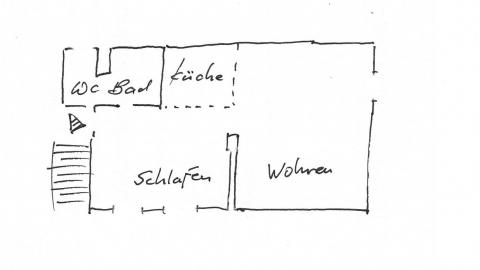 Beschreibung: Die Wohnung besteht aus einem großen Wohnraum mit Kochnische und Schlafnische (mit Trennwand). Ein Duschbad/WC ist vorhanden. Die Wohnung ist an die Gas-Zentralheizung des Hauses angeschlossen, über die auch die Warmwasser-Bereitung erfolgt. Das Haus ist ruhig, im 1. OG und EG befinden sich stille Gewerbe (Büros).