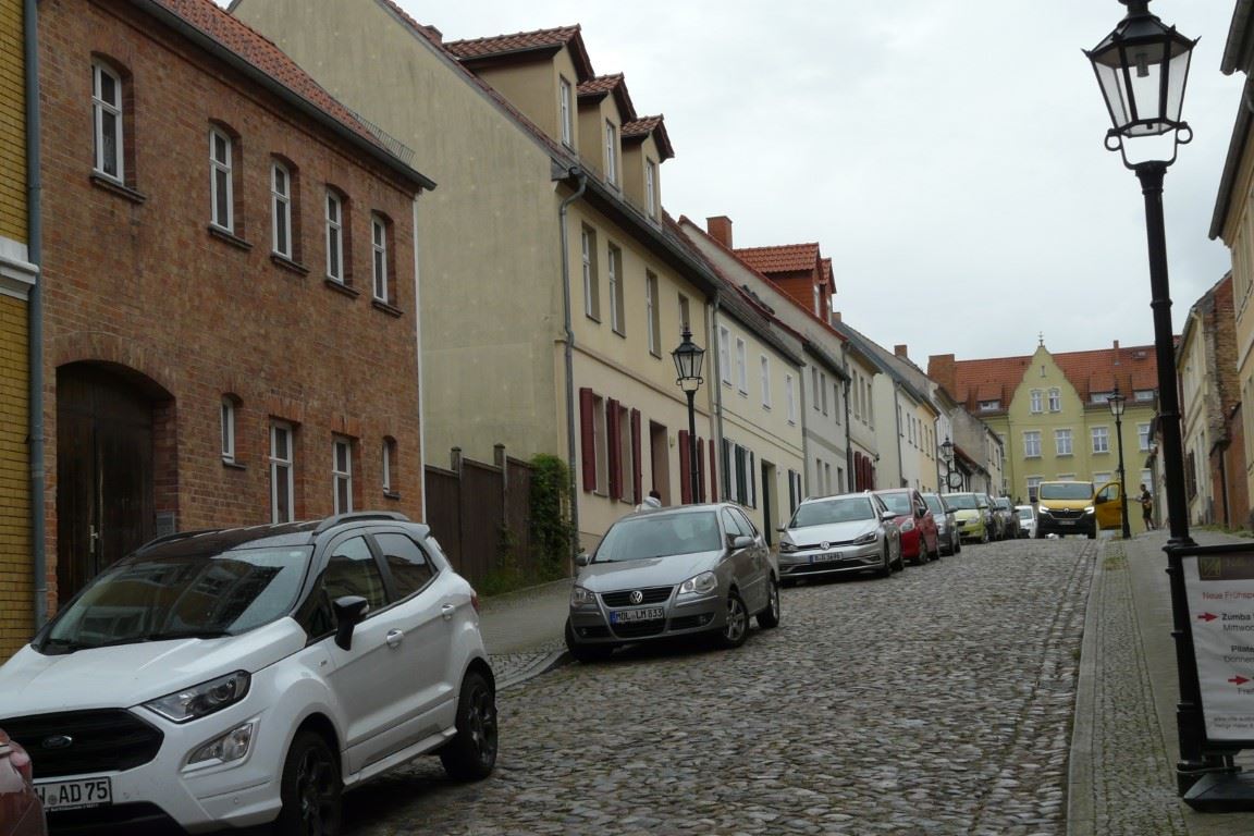 Beschreibung: Die Neue Bergstraße (Einbahnstraße zur Verkehrsberuhigung) wurde im Sanierungsgebiet des städtischen Kerns grundhaft erneuert, modern befestigt, komplett erschlossen und gepflastert. Das Grundstück ist nach menschlichem Ermessen hochwassersicher. Der Sanierungsbeitrag wurde vom Eigentümer abgelöst. Die Neue Bergstraße (verkehrstechnisch eine Einbahnstraße) hat ein Gefälle in Richtung Grünstraße. Die in der Neuen Bergstraße vorherrschenden überwiegend zweistöckigen Bürgerhäuser sind auch im Umfeld des Verkaufsobjektes saniert. Vor dem Haus sind Fußwege und öffentliche Parkplätze für PKW vorhanden. Das Stadtzentrum ist fußläufig erreichbar. Es handelt sich um eine attraktive Wohngegend in der Altstadt. Ca. ab 2004 wurde die Kernsanierung vorangetrieben, wobei 5 Wohneinheiten, einschließlich Dachausbau, entstanden.
